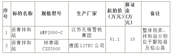 報廢“林泰閣CSD3000型”和“雪桃AMP2000-C型瀝青拌和站設備整體轉讓拍賣(mài)公告